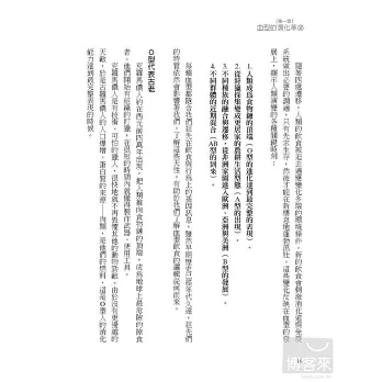 ◆我們可以在人類進化的故事中,找到決定血型關鍵的蛛絲馬跡:O型是最古老的血型;隨著農耕社會的演化出現了A型;當人類北移到更冷、更艱苦的環境時,B型也隨之出現;AB型是最適應現代社會,也是不同族群融合的結果。血型演化的故事,與今日各種血型的飲食需求息息相關。