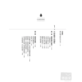乍看之下,血型科學似乎令人生畏,但我保證它就像生活一樣──簡單又基本。我會告訴你血型進化的歷史軌跡(跟人類歷史的故事一樣迷人),揭開血型科學的神祕面紗,並且提供簡單明瞭的計畫讓你能夠遵循。