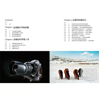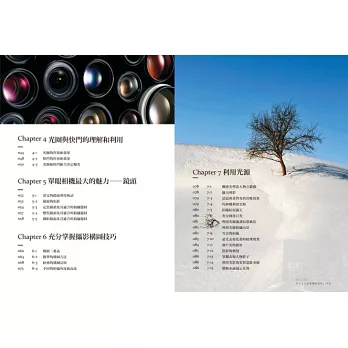 這是一本攝影基礎入門書,專為初級的攝影愛好者所量身打造。本書從數位單眼相機的工作原理到相機、配件的配置與選購,從相機的常用設定到鏡頭的選擇,從畫面的構圖到光線的運用,深入淺出,詳細講解單眼相機攝影涉及的各方面知識。並利用海量實例,分別從風景攝影、人像攝影、動植物攝影三大方面著手,結合構圖、光線、曝光等方面,綜合講解各種實用技能。基礎理論的熟練掌握是拍好作品的第一步,攝影技法的靈活運用會為以後的攝影創作打下良好的基礎。
