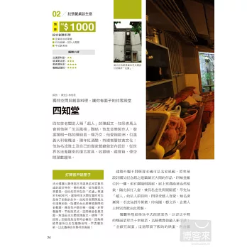 四知堂早先為私人招待所,因深受藝人喜愛、知名度漸開,才改為對外營業,時尚圈、藝文界、企業人士特別喜歡在此用餐。老闆是人稱「超人」的陳超文,他是音樂製作人,發掘獨樹一格的陳綺貞、楊乃文;他愛跑歐洲,引進義大利橄欖油、陳年紅酒醋,推廣飲食文化;他為名流雅士及自己幾家餐廳做室內設計,從世界各地蒐羅來的復古家具、收銀機、藏寶箱,使空間滿載趣味。四知堂建築外觀不對稱清水磚可見名家風範,原來是設計國父紀念館之建築師王大閎的作品,餐廳兼具私密性與開闊感,適合帶享受生活氛圍的客人前往。