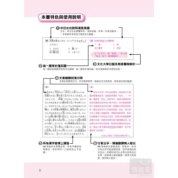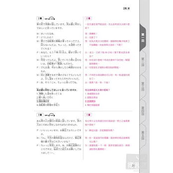 《新日檢N2完全對策:5回模擬試題》附贈的解答本,把「原文題目」和「中文翻譯與解析」同時並列。清楚好讀,方便性無人能及!