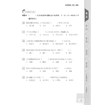市售模擬試題通常只幫讀者列出簡單翻譯,並未再次呈現題目原文,更不可能幫讀者標音。然而,依據本書中外籍編寫團隊表示,漢字讀音本來就是考試項目之一,為什麼要捨棄這個擴充單字的機會,讓分數白白溜走?