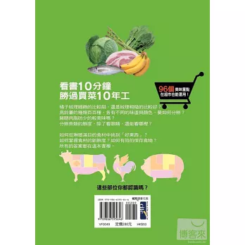 本書可以解決你在超市或賣場購物時的煩惱,不再有無所適從的感覺,圖解式的內容清楚易懂,讓你能立刻分辨並掌握食材的鮮度,而且開本大小適中,可放入背包隨身攜帶。本書絕對是你隨時可派上用場的「食材挑選小助理」。