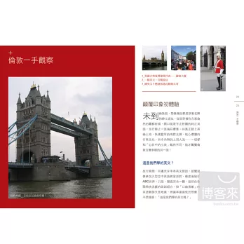 英國之所以能在世界旅遊名單上歷久不衰,不只倚老賣老──大笨鐘、西敏宮、倫敦塔橋,不只追逐新潮──倫敦眼、千禧橋、環保建築,還有獨一無二的皇家級「祕密武器」!作為世上最老牌的君主立憲國家,女王和她的家族成員、禁衛軍隊伍與宮廷城堡,皆話題性十足,特別在威廉王子大婚、破紀錄三度舉辦奧運的當下,迷人指數更是破表!