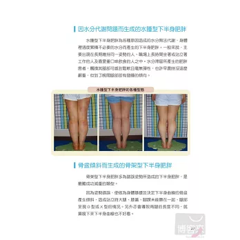 讓韓國藝人尹恩惠、金素妍、蘇幼珍等藝人御用的健康與減重顧問-申貞愛醫師,幫你找出你下半身肥胖的原因所在,並針對你的下半身肥胖類型「對症下藥」,從飲食、運動等多方面打及下半身肥胖,相信想要擁有人人稱羨的下半身曲線將是輕而易舉就能達到的目的!
