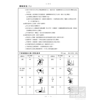機械安全 / 安全色彩使用通則 / 安全標誌 / 感電對策 / 溫度之火色及對於手之感覺 / 氣體瓦斯之危險範圍 / 危險物之性狀