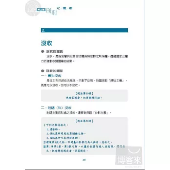 第三版蒐集的考題增加不少,許多刑法過去未能收錄的內容,也趁此次改版的機會加入其中,諸如危險犯、親手犯、公務員定義、妨害秩序罪、妨害衛生物品罪(塑化劑事件)、義憤殺人罪、妨害秘密罪等內容,讓一本四百餘頁的書,可以在國家考試的戰場上發揮最有效率的成果。