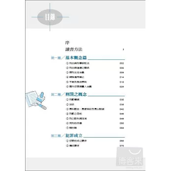 圖解刑法一版甫上市,經過讀者的口耳相傳,迅速地衝上網路書店的排行榜,即便是一年多以後,還是盤鋸在前幾名,一刷、二刷……六刷,接著是深度與廣度兼具的第二版,在博客來的法律排行榜中,幾乎沒有掉出榜外,也代表著好的內容必定能獲得讀者的青睞。