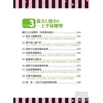 ▲全書超詳細圖解各種示範運動與穴位按摩,只要跟著模特兒一步一步做,準能瘦!
