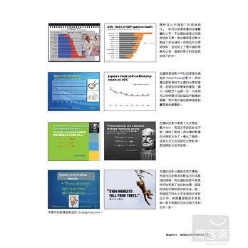 列舉多項簡報設計範例。