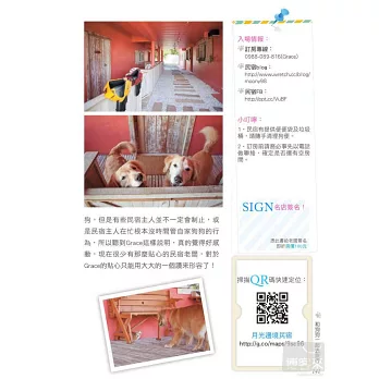 感謝大家的一路相挺與出書過程中的支持。感謝晨星出版社給我這個機會,讓我可以完成夢想。希望藉由這本書,可以和各位一起分享帶毛小孩旅行的幸福,每一篇遊記都可以感受到宛如親臨現場的美好。