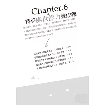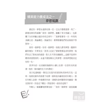 這本《精英培養手冊》就是你通向精英之路的起點,培養自己卓越的能力,像精英一樣思考,學習他們的經驗與能力,塑造完美的自己。