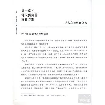 幾千年的世代相傳,極容易「習以為常」,永遠無法發現中國飲食文化的根源。本書打破老祖宗的「砂鍋」問到底!作者抓著一個個字詞,一個個微細動作,抽絲剝繭,通過「比較研究」,發現華人獨特的飲食道路是從遠古的飢餓歷史開始的。