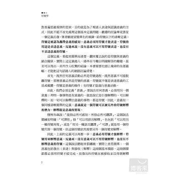 這個定義,看起來簡單而清楚,翻來覆去說的是符號與意義的鎖合關係。實際上這定義捲入一連串至今難以明確解答的難題,甚至可以得出一系列令人吃驚的結論,本書需要化頭上幾章的全部篇幅,才能把這句話捲入的細節討論清楚。