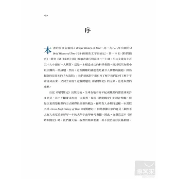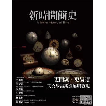 在重新整理組織下,作者擴大讀者特別關注的範疇,並介紹了弦論與完全統一理論等最新的研究進展。比起之前的版本,《新時間簡史》更能帶領科學門外漢翱遊寰宇,藉由最新的科學研究,直探最扣人心弦的時空奧祕。本書包含三十七張全彩插圖,讓《新時間簡史》更添精彩,在科學文學史上屹立不搖。