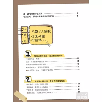 更棒的是,老師把複雜的股票買賣問題簡化成12個單元,只要3天就能全部搞定喔!以後再也不怕聽不懂專業術語,不管是大盤漲跌、財報數字、外資報告,或是技術分析6大指標,和股票有關的節目和雜誌都能看得懂了。