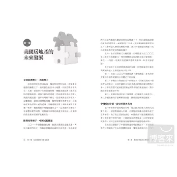 本書從全美經濟到房市的區域性差距,景氣分析、投資原則、估價、出租管理、融資、保險、稅務……作者以實例深入淺出的解析,讓你輕鬆讀懂投資美國房地產的關鍵知識。