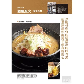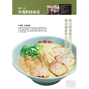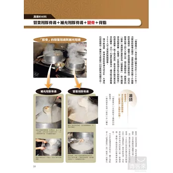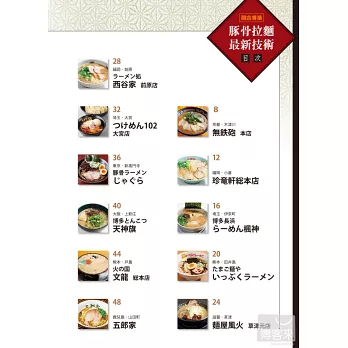刊載23種獨特的專業豚骨湯頭的熬煮方法,所使用的材料、部位和湯頭混合的方式和時機也毫不私藏,每項湯頭製作過程皆有詳細說明和步驟圖,輕鬆學會達人級的熬製技術。還告訴您各家人氣店所使用的各式配菜、叉燒肉、調味料等。
