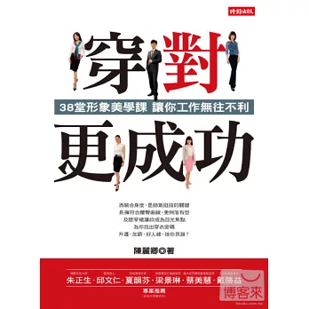 陳麗卿老師十六年來形象造型教學的精華大公開,不論是初出社會的新鮮人、想往上爬升的小資族,或是位居管理階層的經理人、學有專精的專家學者,以及領導企業的老闆……都能在書中找到切合自身的形象建議。透過三十八堂實用的精闢課程,為你的形象找到定位及突破點,讓外型與能力同樣出色!