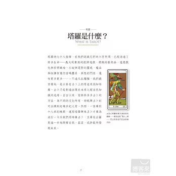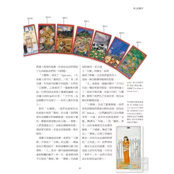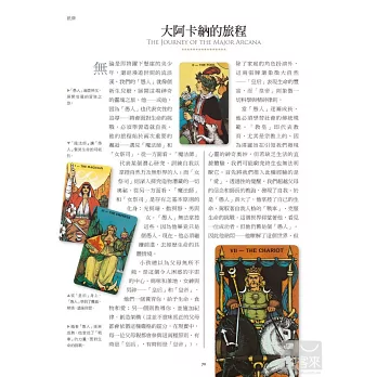 ※本書對從古至今具代表性的各種塔羅牌均有著墨,探討其創作背景、精神及適用領域,對於選購塔羅牌極具指引價值,更是塔羅收藏者不可或缺的參考指南。