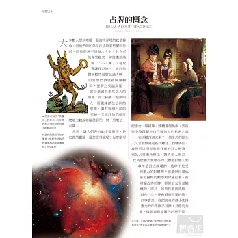 ※本書名為「全書」,顧名思義,內容包羅萬象,從塔羅之歷史起源、神祕學之背景、圖像之象徵意義,乃至占卜上的應用,皆有詳盡且實用的介紹。