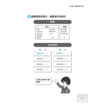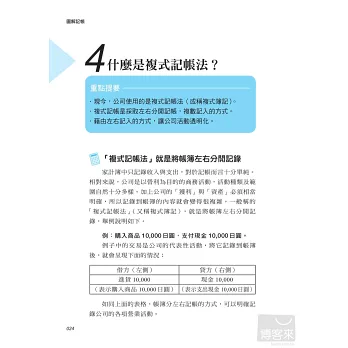 本書針對會計零基礎的人,採用圖解方式,從會計的最基本——「記帳」開始說明,教導讀者從分錄、過帳到決算的整個流程,到如何製作財務報表為止。而特別將重點放在「分錄」,讓讀者可以搞清楚,每個會計科目什麼情況要放在借方、什麼情況要放在貸方。