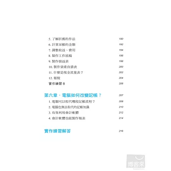 第六章「電腦如何改變記帳」中,作者提醒大家有效使用會計資訊系統或軟體,不僅可以節省記帳的時間,更能把精力花在分析財務報表、做決策(但前提是懂記帳的原理)。