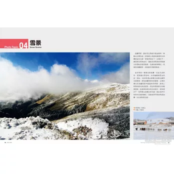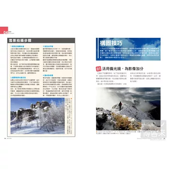 《風景的極意》一書中,我們新增了三個主題:煙火、海岸、全景攝影。原書中疏漏錯誤之處,在此也一併修正,使內容更趨完善。此期間更遠赴內蒙古赤峰市克什克騰旗,深入拍攝零下40℃酷寒中的人文與風景,挑戰極地的經驗更是邁前了一大步,親身體驗相機器材的操作極限;另外,也曾兩度登上集天下名山勝景於一身的黃山,帶回不少珍貴相片。惟書本的篇幅有限,無法一一呈現,僅能挑選幾幅代表性的作品列於書中。