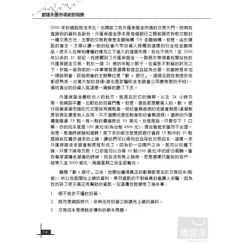 在編寫本書的時候,其實原先的書本內容只是要做為教材工具來作使用,讓各位想要接觸外匯程式設計的投資人,進一步的瞭解MT4的功能以及幫助。但是,既然選擇了要出書,那我就希望這本書的效益當然也就不能只是工具而已,所以我在全書的內容增加了絕大部分的篇幅來說明外匯保證金市場,我曾經也是一個懵懂無知的投資人,第一次接觸金融市場的時候和所有人一樣抱著一個淘金夢進來這個領域。我選擇的第一個商品就是外匯保證金,這也是為何我會一直執著於這個衍生性金融商品。