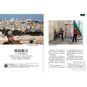 本書深入介紹以色列、巴勒斯坦、約旦、黎巴嫩和敘利亞,這裡是飽受歐美媒體扭曲報導的地區,卻也是人類文明起點,蘊含無數珍貴文化與震撼自然的美景。許多原以為只是傳說的城市,陸續挖掘出土;也有很多熱門電影到此取景。熱愛深度文化之旅的旅人,踏上這個旅途,等於走過人類一萬年的歷史文明結晶。