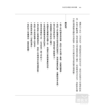我們的想法和話語威力無窮!如果能為自己加油,又何苦給自己洩氣?療癒的第一步,就從愛自己、接受和認同自己開始。這是過去八年來,我從《創造生命的奇蹟》中所汲取的智慧。未來的課題仍多,幸運的是,我總有此書相伴。