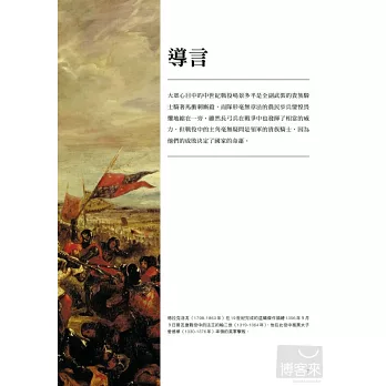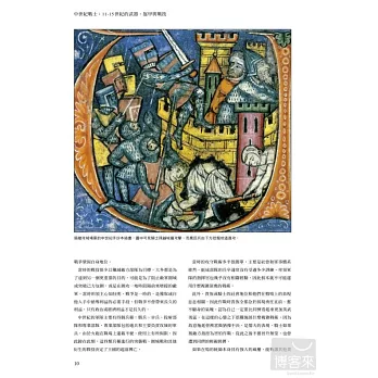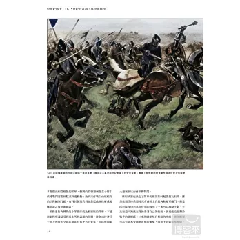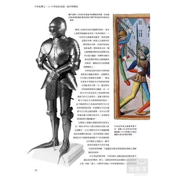 本書以平易近人的方式帶領讀者入門,娓娓細述11到15世紀之間武器和戰爭技術的研發如何徹底改變歐洲戰役的面貌。作者在敘述中帶入大量史實,輔以多幅精美插畫,為讀者引介中世紀時期的武器與戰鬥技巧,書中四章依序介紹騎馬戰士、步兵、投射部隊及攻城工兵部隊。