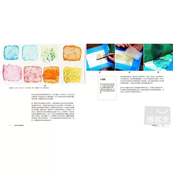 動手探索滴漏、吹散、潑濺、噴灑顏料的樂趣,裁剪大幅圖畫來拼貼創作,用水彩寫字,從詩中找靈感,在舊明信片上創作,每個練習都好好玩!