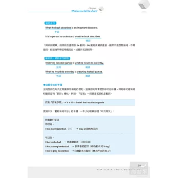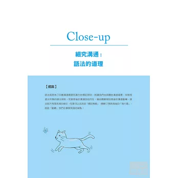 《英文文法有道理!:重新認識英文文法觀念》帶你重新認識十大語法觀念,一轉過去對語法的誤解或不了解。每章語法分基礎篇、進階篇,可以依程度選擇閱讀。每個章節最後並有「語法現身說」之練習單元,從選擇題、克漏字,到進階開放式的練習題,幫助內化與應用文法概念,取材自真實英文,如商業英文、經典名句、小說等等豐富題材,真實活用。