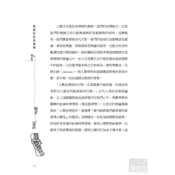 「人類是理性的動物,凡事都會仔細思量,計算出何者對自己最有利後再採取行動。」古代人得出這番結論後,以上這幅圖像就此深深烙印在我們心中。與數學較有關聯的社會科學學科(像是經濟學),大部分的理論都奠基於「人類是理性的,會選擇『最可能使他們最看重的欲望得以實現』的選項」這個概念。但是這前提頗為詭異,因為許多其他的社會科學領域,像是心理學和社會學,已提供了相當豐富的證據,證明人類的行為並不遵守著上述概念而行。