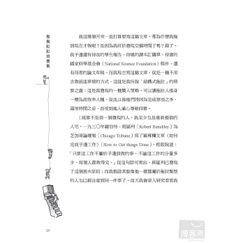 我最喜歡的是一封來自某位女士的信,她說她終其一生都是個拖拉人,當一個拖拖拉拉的人很痛苦,其中主要原因是她的兄弟老是拿她這個性格缺點大做文章。她說她讀了我的文章後,終於能抬頭挺胸,了解自己雖然老是拖拖拉拉,卻也完成了非常多的工作,是個有用的人。她說她讀完我的文章後,她終於生平第一次鼓起勇氣,叫她的兄弟閉嘴然後滾蛋。她在信末寫道:「對了,我已經七十二歲了。」