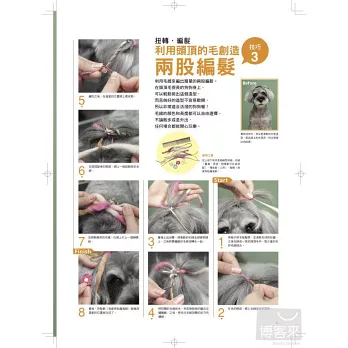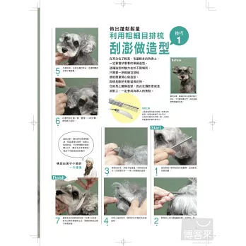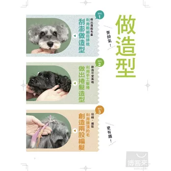 除了最基本的造型教學,還有數十款令人驚豔的髮妝造型圖鑑示範,搭配詳細的圖文解說,讓可愛又酷炫十足的剪毛風格,在自己家裡也能完成。無論您的愛犬是可愛的小女生、還是帥氣的小男生,帶您輕鬆學會多種專業剪毛塑型技巧,輕鬆為愛犬變換最時髦的造型。