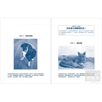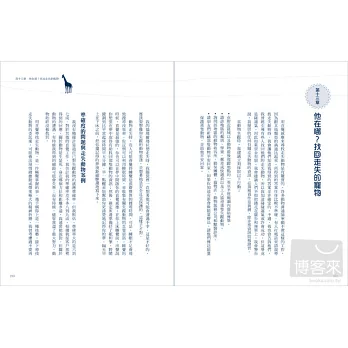 第八、九章則是幫助你精進此直覺溝通能力,讓你能自在地跟動物交流對談。等到累積出一些信心之後,你就可以開始活用這些技巧了。