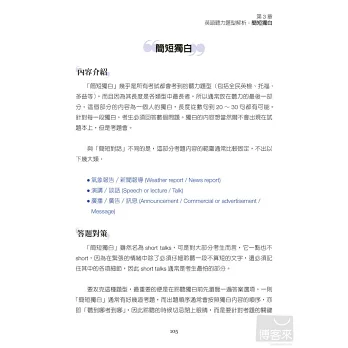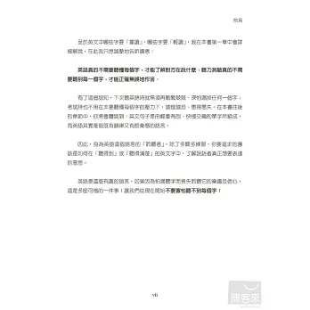本書最適合對聽力測驗感到恐懼的考生,以及深怕漏聽任何一個字就聽不懂的讀者。讀了本書,除了可以建立最重要的聽力觀念,還可以:
