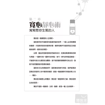 寬心靜心術建議我們用寬容的心來對待給我們壓力的社會。