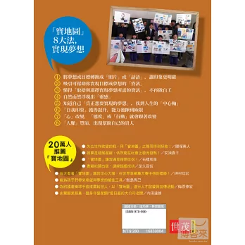 「寶地圖」的作法很簡單,是每個人都做得到、能夠持續下去,且絕對有效的夢想實現工具。日本暢銷作家本田健大師,日本首屈一指的個人投資家竹田和平先生等各個領域的佼佼者,都給予寶地圖極高的評價。