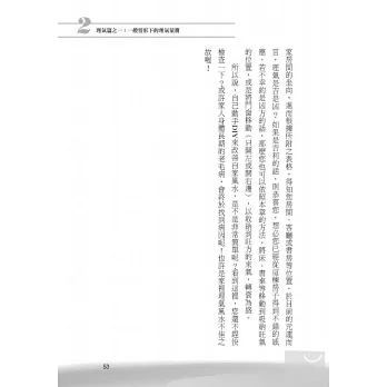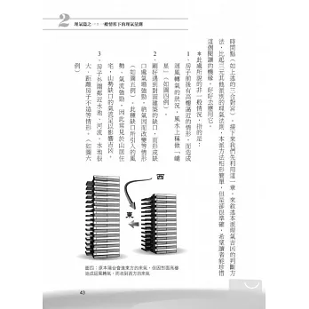而在閱讀坊間的風水書籍中,大多會提到很多專有名詞(technicalterms)或種種神煞名詞(ferociousterms),這樣容易流於一家之言或是令人望之生畏;所以本書於編寫過程中,盡量避開此等專有名詞,或是詳加解釋之,將古代的知識以現代化的說法說明,力求讓人讀懂為原則。