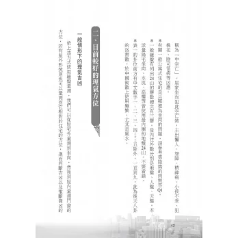 坊間的風水書籍多如牛毛,太過專業的、不專業的、抄襲捉刀的、推銷制煞與開運商品的…等等,在在都拖垮著讀者們的耐性與時間。因此,我特別利用一開始的自序文中,點出了本書的書寫理由與建議讀者們購買、閱讀的理由;如果正在翻閱本書的您也有認同的話,希望這樣的一本風水書可以興起一點不一樣的漣漪,進而有正向的回饋,這樣就已達到我的目的了。