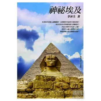 一般人對埃及的印象,不外金字塔、人面獅身像、尼羅河、無際的沙漠……等,而近來前往埃及旅遊的人越來越多,只是市面一般旅遊雜誌叢書多介紹埃及古蹟為主,對於這個擁有悠遠歷史的古老國度其他面向了解甚少。