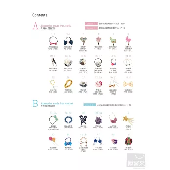 分別以布、鉤針、皮革、織帶和花邊來製做總共83種不同的可愛小飾品。