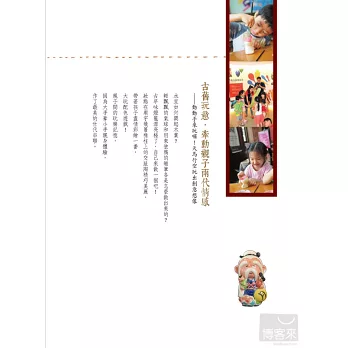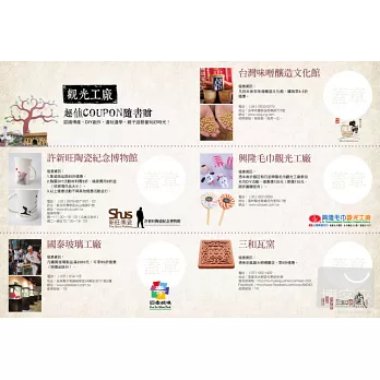 1. 與坊間介紹觀光工廠主題有所區隔:強調親子互動、文化傳承、吸收多元知識、邊玩邊學、珍藏回憶,是一本「親子旅行+教養」書。