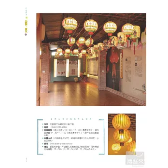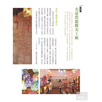 跟著本書的腳步,一同走入爸媽早年生長的時空裡,藉由一塊磚、一個手製燈籠、一個親手捏塑的陶器……認識生活裡的日用品從何而來;舊時的童玩如何既創意又有趣;了解產品和地緣之間微妙而緊密的關係……換句話說,觀光工廠在開創新面貌之餘,它更是一條時光的線索,循著前進,親子可以重溫舊時光、話當年,一一串起很多情感、故事和回憶……