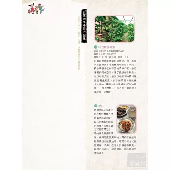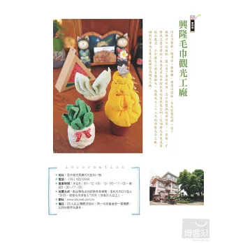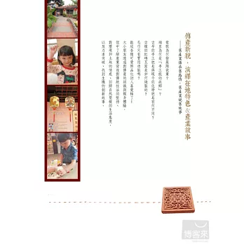 5. 收藏回憶的禮物:本書強調親子邊玩邊記錄旅行中的回憶,在旅遊每家觀光工廠之餘,都規劃一個小空間,讓親子用相片、文字、戳記、剪貼,收藏旅遊的回憶和感動……發揮「親子創作」的概念,完成後,即是一份爸媽送給自己和孩子的珍貴禮物。