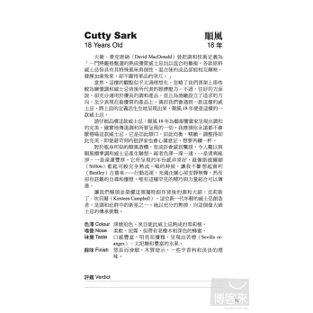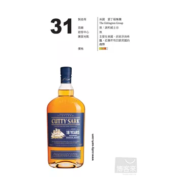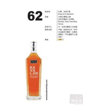 ˙排除專為收藏家所設計的產品,嚴格把關價格,本書一半酒款售價在40英鎊以下,是為大多數威士忌愛好者所編寫的一本獨特威士忌品飲指南。