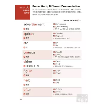 英式英語的獨特發音,主要來自母音子音的發音與美式英語有所差異。本書透過29堂發音課,教你英式英語的44個母音及子音,從最重要的發音基礎,理解英式英語的發音重點。
